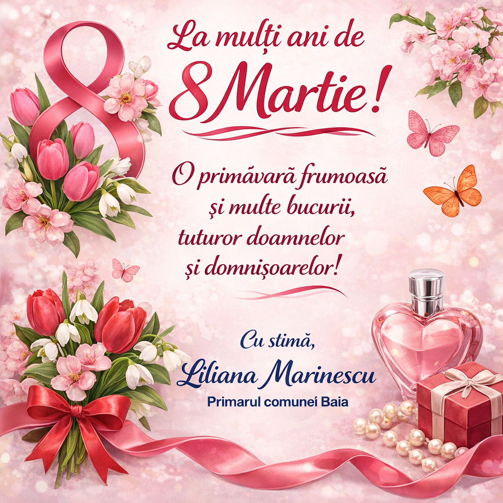 „La mulți ani de 8 martie” vă urează primarul comunei Baia, Liliana Marinescu
